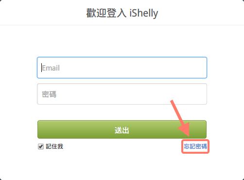 點選後輸入您的Email – 當初註冊iShelly的Email同時也是您的登入帳號。